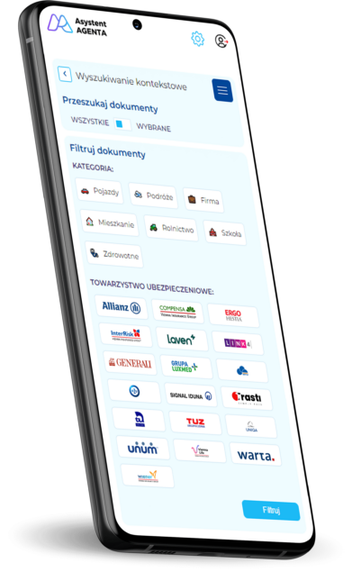 Wsparcie, które umożliwia błyskawiczne przeszukiwanie dokumentów OWU w celu uzyskania szybkich odpowiedzi. Wprowadź interesujące Cię hasła, a system natychmiast pokaże wyniki wraz z odnośnikami. To idealne rozwiązanie, gdy potrzebujesz znaleźć, gdzie ubezpieczyć coś nietypowego. Wyszukiwanie kontekstowego oszczędza czas i pomaga w łatwym poruszaniu się po złożonych dokumentach.